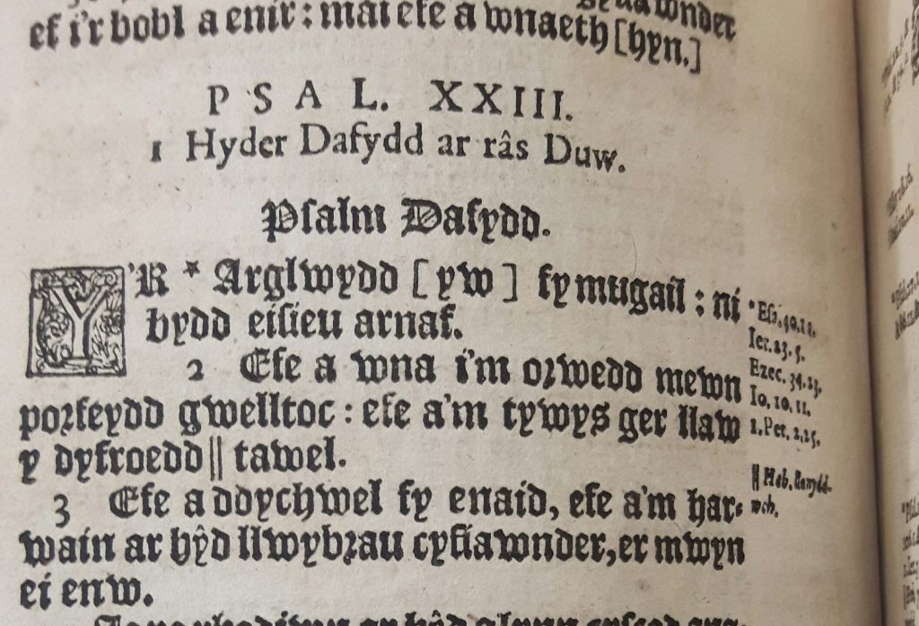 Salm 23 ym Meibl 1620 Richard Parry yng Nghasgliad Salisbury Prifysgol Caerdydd.